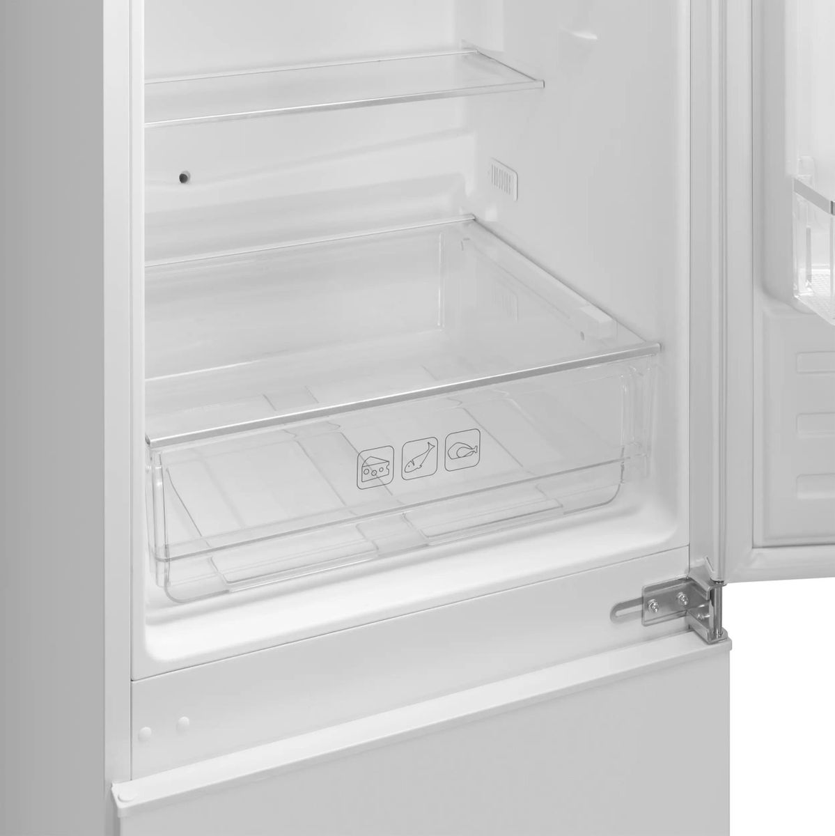 Описание Встраиваемый холодильник Meferi MBR177 LOW FROST Холодильник встраиваемый MEFERI MBR177 LOW FROST - это современное и функциональное решение для хранения продуктов. Холодильник имеет два отделения: холодильное и морозильное. Морозильная камера расположена снизу, что обеспечивает удобство использования. Общий объем составляет 242 литра, из которых 182 литра приходится на холодильное отделение и 60 литров - на морозильное. Особенностью конструкции является перевешиваемая дверь, что позволяет установить холодильник в любом удобном месте. Материал покрытия - металл, что гарантирует долговечность и надежность устройства. Размораживание обеих камер происходит по технологии Low Frost, что обеспечивает быстрое и равномерное оттаивание без образования инея. Холодильник оснащен электронным типом управления, что делает его использование простым и удобным. Тип компрессора - стандартный, что обеспечивает стабильную работу устройства. Энергопотребление составляет всего 260 кВтч/год, что соответствует классу энергопотребления A+. Климатический класс ST гарантирует стабильную работу холодильника в различных климатических условиях. Холодильник оборудован звуковой индикацией открытой двери и повышения температуры, что позволяет контролировать состояние устройства и своевременно реагировать на возможные проблемы. Уровень шума составляет всего 39 дБ, что делает его практически бесшумным. MEFERI MBR177 LOW FROST подходит для использования в гостиницах, благодаря своим функциональным особенностям и надежности.