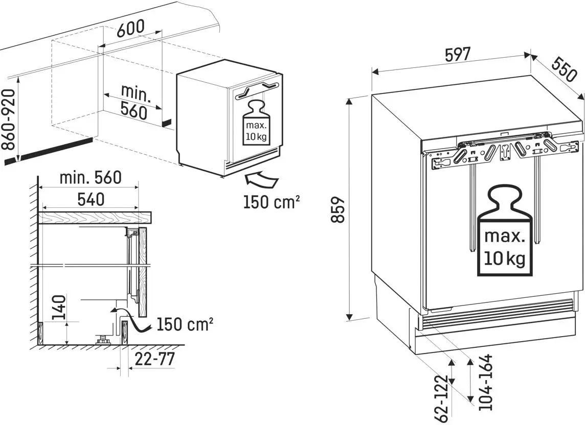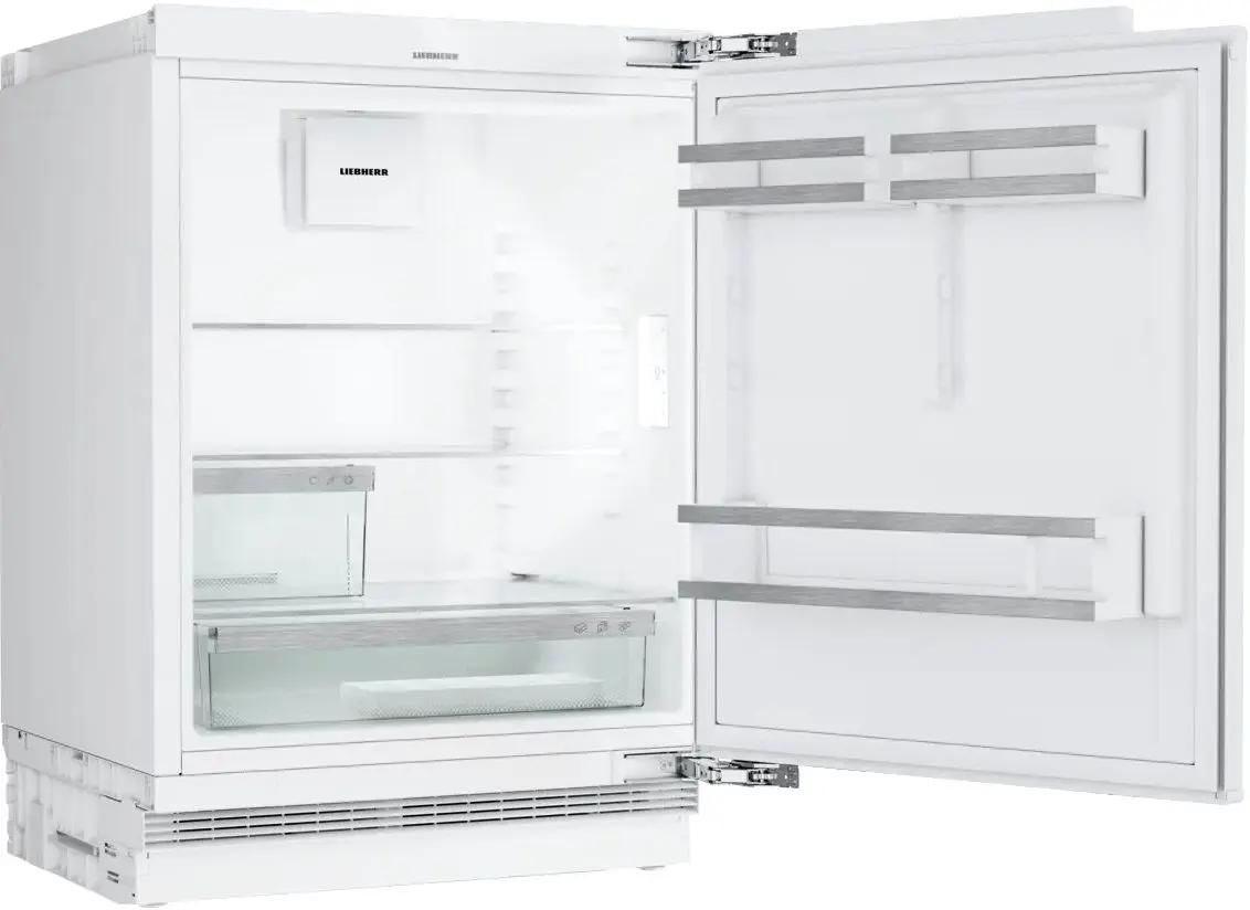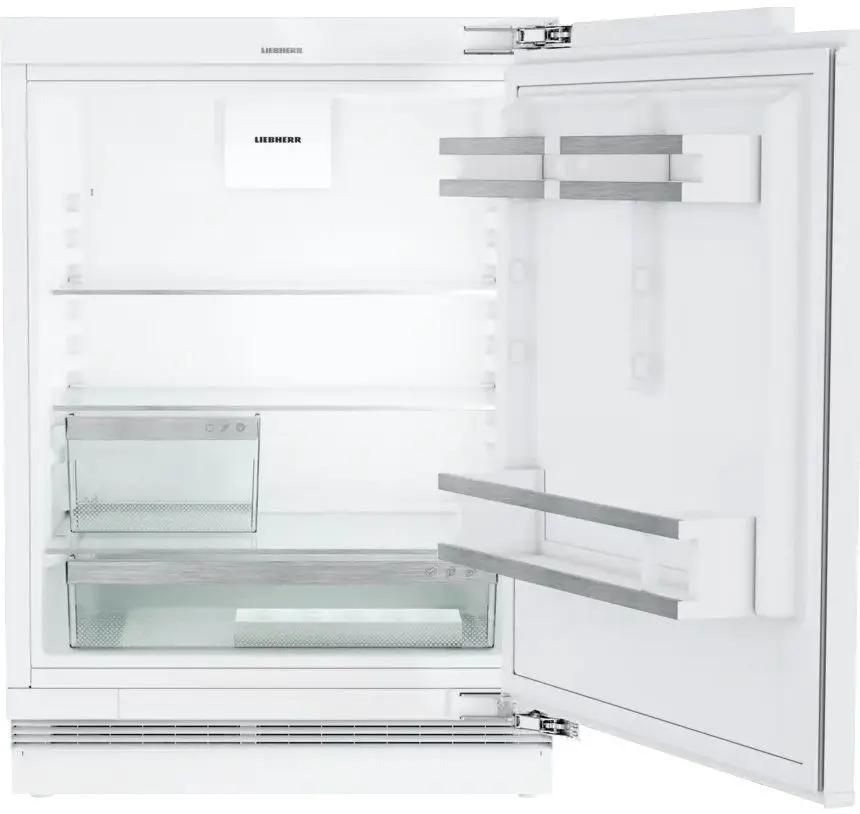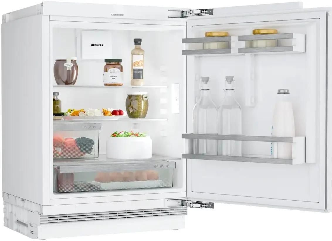Описание Встраиваемый холодильник Liebherr URc 3700-20 001 Встраиваемый холодильник Liebherr URc 3700-20 001 – компактная модель из серии Pure, которую можно установить по столешницу или под прилавок. Потребуется ниша размерами 86-92 х 60 х 56 см. Общий объем прибора составляет 135 л, морозильная камера не предусмотрена. Климатический класс SN-T Означает, что прибор будет эффективно работать практически в любом климате. Внутреннее оснащение Установлены три полки, выполненные из прочного стекла. Две из них можно переставлять по высоте, чтобы адаптировать пространство под текущие нужды. На двери расположено три кармана: два – для консервов и прочих продуктов в небольших упаковках и один для бутылок. Также предусмотрены два контейнера для хранения фруктов, овощей и других продуктов и лоток на десять яиц. Светодиодное освещение Обеспечивает отличный обзор всего внутреннего пространства, не влияет на микроклимат и долго не требует замены. Сенсорное управление Панель расположена внутри корпуса. Температура устанавливается в диапазоне от +2°C до +9°C. При крупной загрузке продуктов будет полезен режим SuperCool – «Суперохлаждение». Доступ к настройкам быть заблокирован – эта функция будет полезна семьям с маленькими детьми. Особенности установки Крепление фасада жесткое, максимальный вес фасада – 10 кг. Дверь открывается направо, однако при необходимости ее можно перенавесить на другую сторону и с удобством пользоваться прибором в помещении любой планировки. Вентиляционные отверстия расположены спереди – холодильник можно поставить близко к стене. Угол открывания двери – 115°, что обеспечивает свободный доступ к содержимому. Четыре регулируемые ножки помогут нейтрализовать небольшие неровности пола и установить прибор устойчиво.