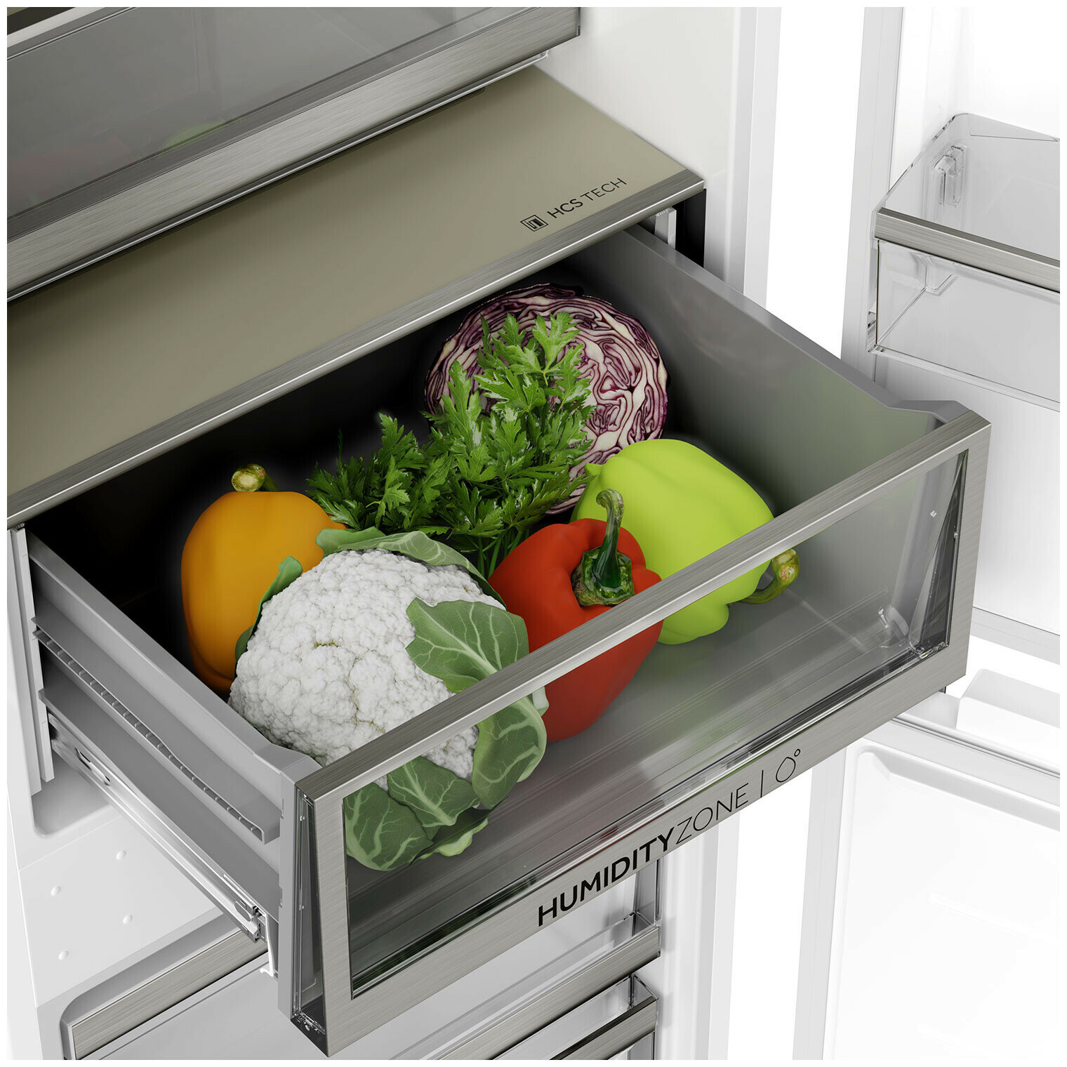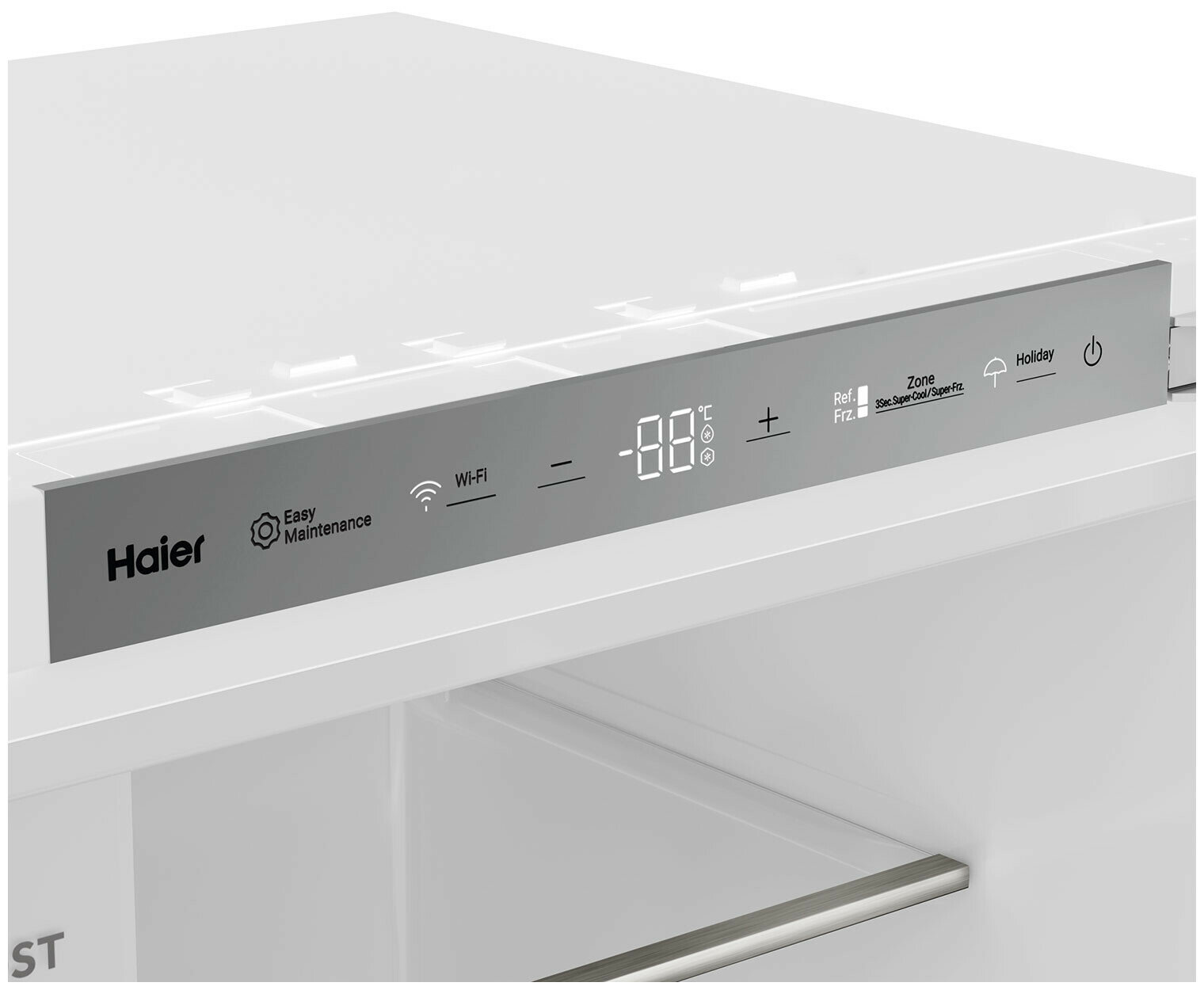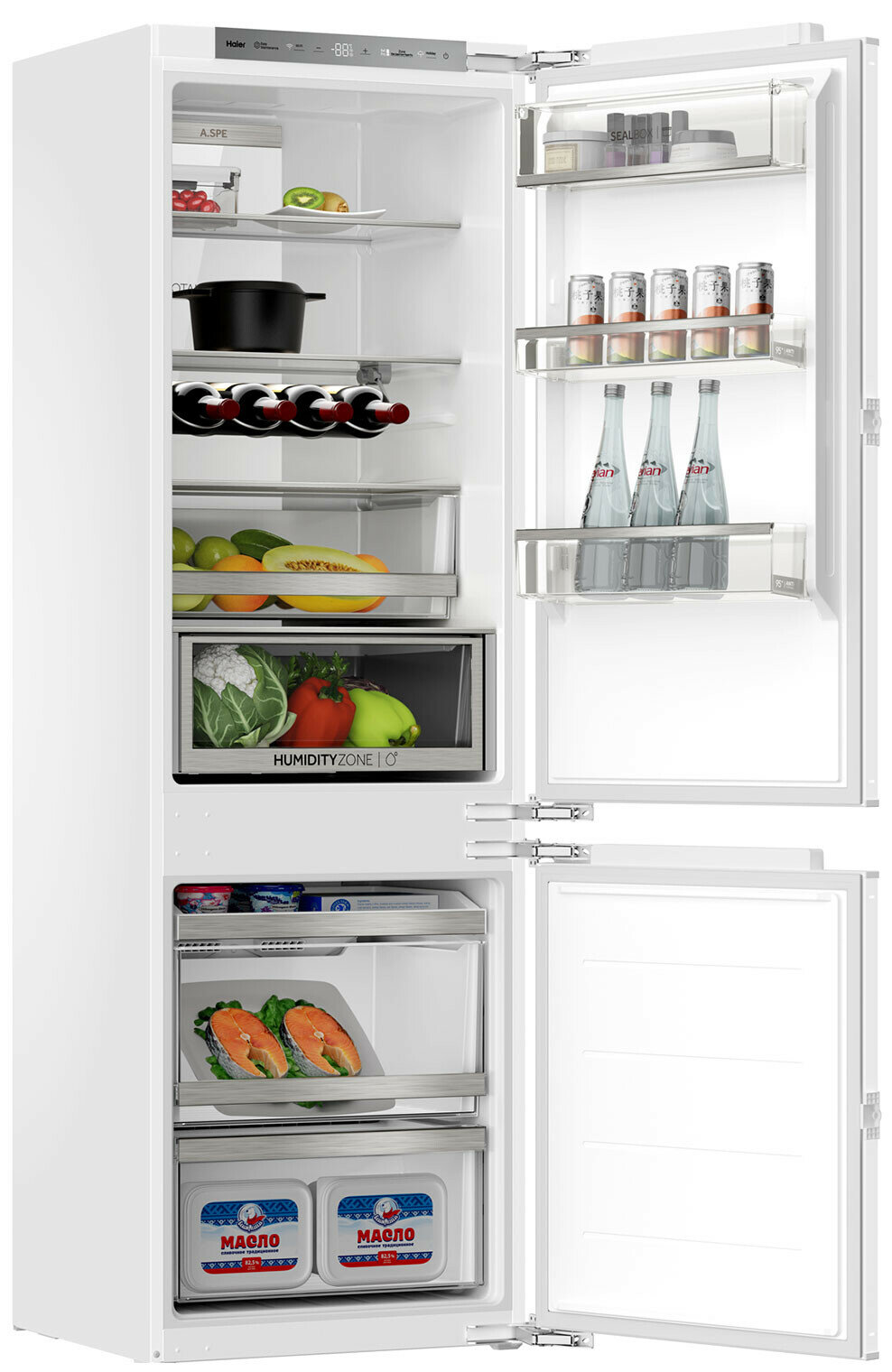 Описание Встраиваемый холодильник Haier BCF5261WRU Поддержка мобильного приложения evo Управляйте вашим холодильником удаленно. С помощью evo контролируйте и настраивайте температуру охлаждения в камерах, получайте уведомление об охлаждении напитков или другие важные оповещения на экран смартфона. LED-освещение Светодиоды ярче, долговечнее и экономичнее обычных ламп накаливания. Они почти не влияют на температуру в холодильном отделении — это служит качественному хранению продуктов и менее интенсивной работе компрессора. Сенсорный дисплей Главные параметры работы — температура в отделениях и активные функции — всегда на виду. Владелец легко контролирует работу холодильника визуально. Складная полка для бутылок Двойная складная винная полка разработана для максимального удобства хранения продуктов и напитков: моделируйте пространство так, как вам удобно. Контейнер Humidity zone Респираторная мембрана отводит лишнюю влажность, если ее уровень более 90%, или накапливает влагу при излишне сухом воздухе. Овощи и фрукты дольше остаются свежими.