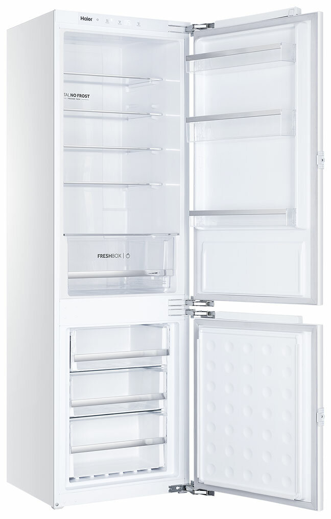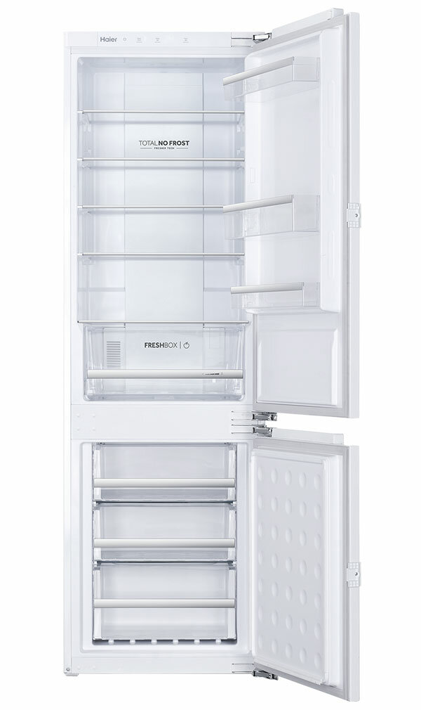 Описание Встраиваемый холодильник Haier BCFT528AWRU Total NoFrost В холодильном и морозильном отделении реализовано авторазмораживание Full No Frost — лёд в рабочих камерах не образовывается. Это ощутимо упрощает эксплуатацию холодильника. Высота 1,77 м Высота встраиваемого холодильника Haier — 177 см — позволяет разместить в нём много продуктов. Такие модели удобны для владельцев и подходят для встраивания на любой кухне, даже небольшой площади. LED-освещение Светодиоды ярче, долговечнее и экономичнее обычных ламп накаливания. Они почти не влияют на температуру в холодильном отделении — это служит качественному хранению продуктов и менее интенсивной работе компрессора. Сенсорный дисплей На LED-дисплее встраиваемых холодильников Haier отображается вся важная информация: температура в отделениях и активные функции. Владелец в курсе всех настроек и легко контролирует работу холодильника визуально. Total NoFrost Ручное размораживание ушло в прошлое. В холодильном и морозильном отделении реализовано авторазмораживание Full No Frost — лёд в рабочих камерах не образовывается. Это ощутимо упрощает эксплуатацию холодильника. Встраиваемый HAIER BCFT528AWRU — отличный пример действительно современного и удобного холодильника высотой 177 см. Холодильник позволяет хранить одновременно много продуктов (холодильное отделение — 169 л, морозильное — 59 л), что важно для больших семей и для тех, кто любит готовить. Технология Total No Frost позволяет забыть о ручном размораживании — в обоих отделениях реализовано авторазмораживание. Надёжный компрессор обеспечивает бесперебойную работу холодильника при низком энергопотреблении — класс энергоэффективности А. Полки и контейнеры со стильной серебристой окантовкой придают внутреннему пространству модный и современный вид. Светодиодное (LED) освещение — яркое, долговечное и не влияет на температуру в холодильном отделении, в отличие от ламп накаливания. Интуитивно понятное сенсорное управление с дисплеем делает эксплуатацию холодильника максимально удобной. Встраиваемый холодильник HAIER BCFT528AWRU — это дополнительные возможности для экспериментов с дизайном кухни и качественное хранение продуктов.