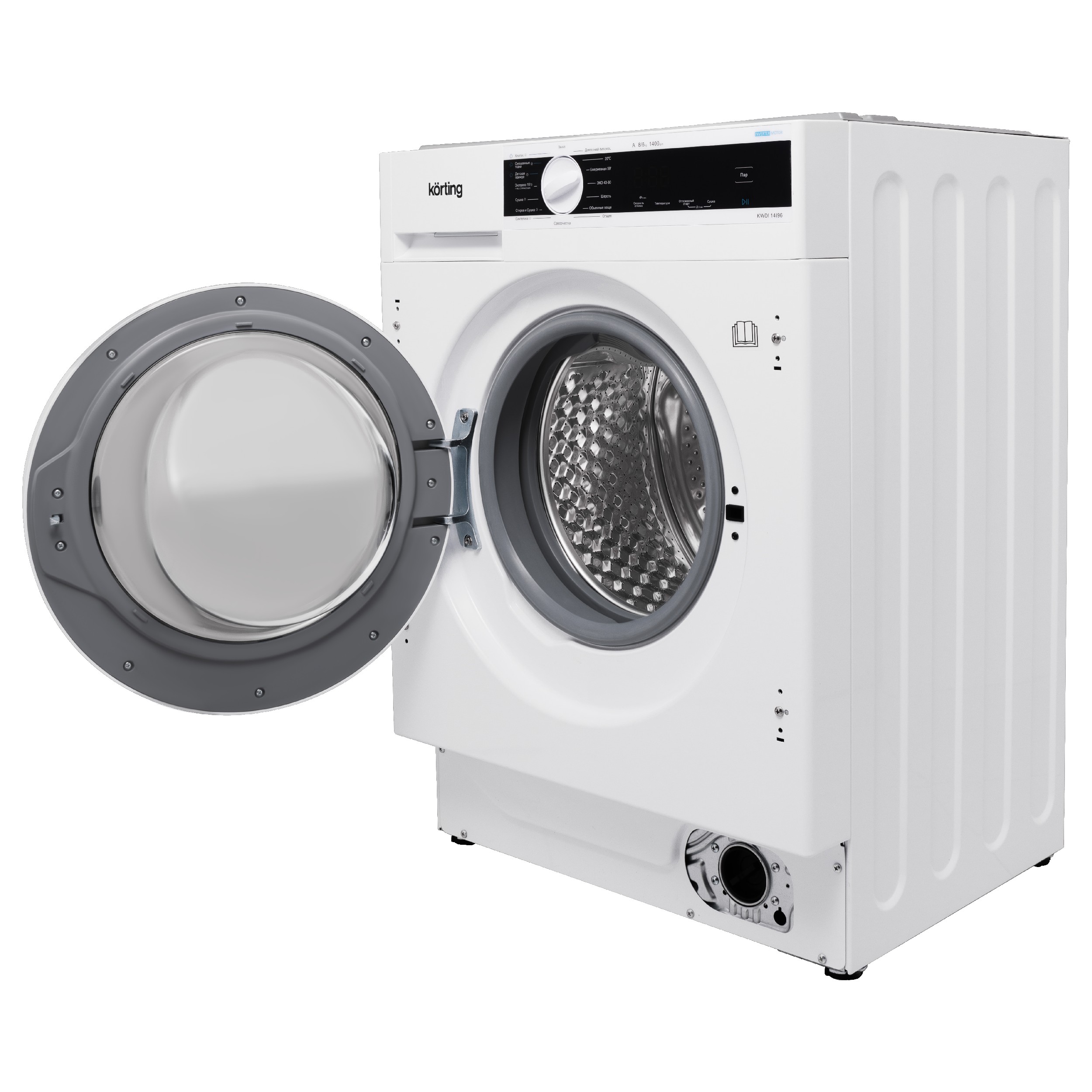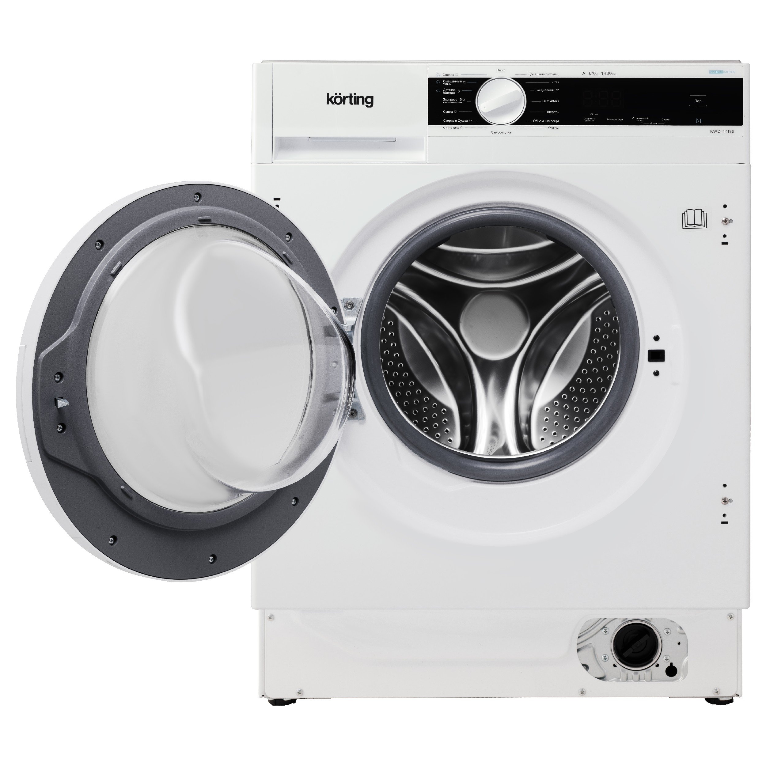 Описание Встраиваемая стиральная машина Korting KWDI 14I96 Функция Пара Стиральная машина с функцией пара набирает воду по окончанию основной программы и нагревает ее до температуры 80 градусов. Образовавшийся пар поступает в барабан, где происходит обработка тканей. Пар может быть добавлен в конце любого режима стирки, включая короткие программы и это дополнительная гигиена, дезинфекция и освежение вещей. Белье становится более воздушным и меньше сминается благодаря парообработке, соответственно его легче гладить. Функция «Защита детей» Чтобы любимое чадо не вмешивалось в процесс работы программы, есть возможность блокировки управления. При этой функции недоступны для нажатия любые кнопки кроме выключения машины. Функция «Отложенный старт» В некоторых случаях необходимо отложить включение прибора на несколько часов, чтобы, например, сэкономить на тарифах электроэнергии или завершить процесс к определенному времени. Отложенный старт позволяет запрограммировать прибор на автоматическое включение в нужное время. Инверторный мотор Инверторный мотор работает при помощи инверторного преобразователя и не имеет угольных щеток, благодаря чему надежность такого двигателя выше, так как он имеет меньше трущихся деталей. Снижается уровень шума и уровень потребление электроэнергии становится ниже. Контроль пенообразования В случае излишнего пенообразования в баке, например, из-за неправильно выбранного типа или количества моющего средства, а также при стирке тканей с большим количеством микроотверстий, стиральная машина самостоятельно настроит длительность и количество полосканий для полного устранения пены и остатков моющего средства в ткани. Контроль баланса барабана В процессе отжима стиральная машина контролирует, насколько равномерно белье распределено по поверхности барабана и в случае возникновения дисбаланса самостоятельно устраняет его, используя особый алгоритм вращения. В особых случаях, когда дисбаланс не удалось устранить, стиральная машина отключит цикл отжима, тем самым предотвращая сильный шум и вибрации.