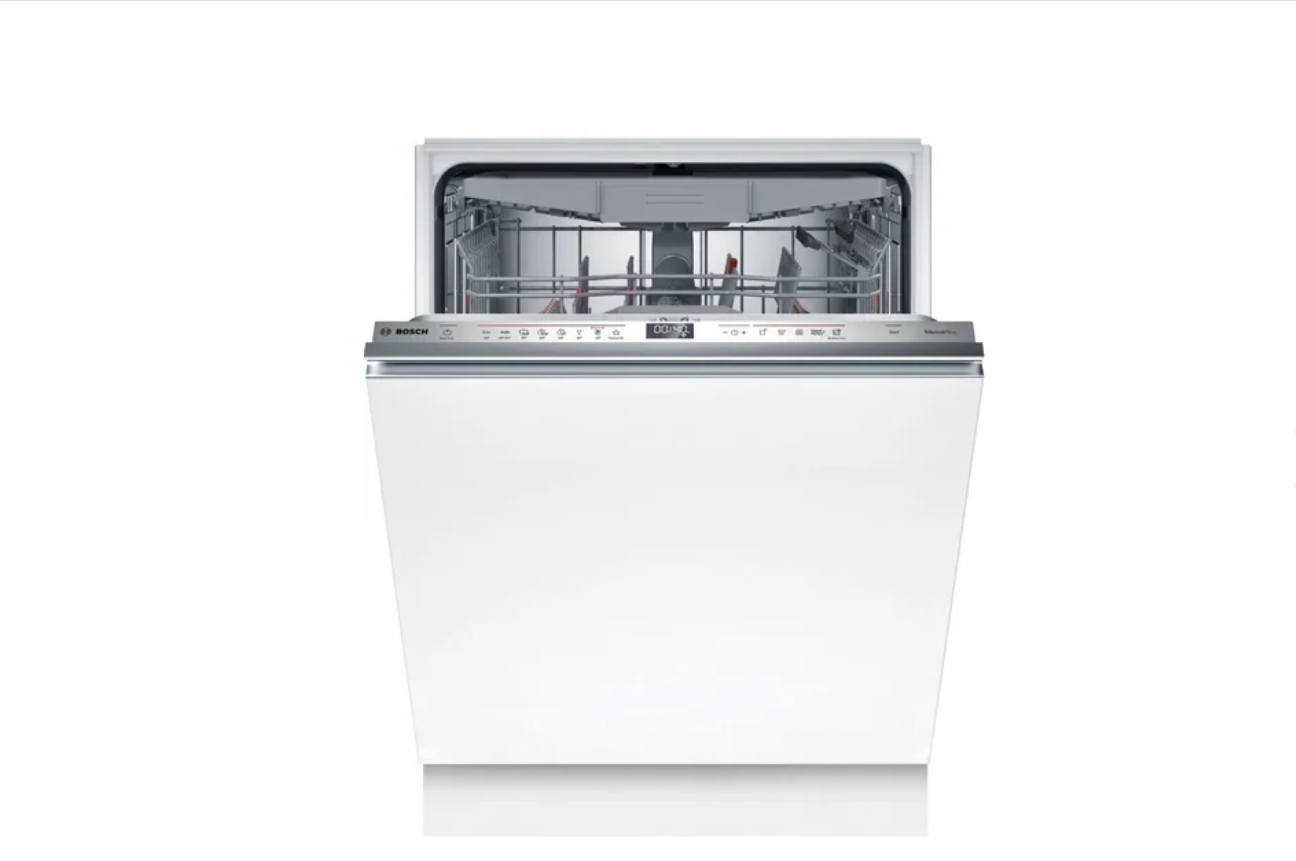 Описание Встраиваемая посудомоечная машина Bosch SMD 6ECX12E Встраиваемая посудомоечная машина Bosch SMD 6ECX12E Serie 6 – это высокотехнологичное и интеллектуальное решение для вашей кухни, обеспечивающее безупречную чистоту, сияние и сухость посуды с максимальным комфортом. С вместимостью 14 комплектов и 8 программами, включая автоматические, она идеально подходит для больших семей и ценителей безупречного результата. Проекция TimeLight на пол информирует о статусе работы, а специальная ExtraClean Zone справится с самыми стойкими загрязнениями. Полностью интегрируясь в ваш кухонный гарнитур, она станет незаметным, тихим, а главное мощным помощником в быту. Преимущества: Полностью встраиваемая модель, ширина 60 см: Идеально интегрируется в кухонную мебель, сохраняя единый стиль вашей кухни. Вместимость 14 комплектов посуды: Просторное внутреннее пространство позволяет эффективно мыть большое количество посуды, что идеально подходит для семей. Теплообменник: Бережная сушка посуды без температурного шока, что идеально для чувствительных бокалов. Автоматическое открывание дверцы EfficientDry: Функция EfficientDry автоматически открывает дверцу машины по окончании программы. Процесс сушки становится более эффективным, предотвращает образование конденсата и бережно охлаждает посуду, чтобы ее не нужно было досушивать после разгрузки машины. Экономит Ваше время и электроэнергию. Технология AquaSensor: Оптимизирует расход воды в зависимости от степени загрязнения посуды. Датчик оценивает чистоту воды после предварительного ополаскивания и при необходимости добавляет свежую воду. Мотор EcoSilence Drive: Тихий, высокоэффективный и долговечный инверторный мотор, который работает без щеток, снижая шум и продлевая срок службы прибора. Технология DosageAssist: Равномерное растворение таблетки моющего средства, обеспечивающее оптимальное использование средства и качество мойки. Индикация на полу, проекция Time Light: Цифровой дисплей, который проецирует на пол информацию о цикле, времени старта и окончания в часах и минутах. Система открывания дверцы OpenAssist: Позволяет устанавливать фасады шкафов без ручек. Посудомоечную машину теперь можно легко и удобно открыть, слегка нажав на фасад, даже если у вас заняты руки. Импульс активирует защёлку, и дверца открывается плавно и бесшумно. Это не только стильно, но и невероятно удобно. ExtraClean Zone: Дополнительная зона с тремя вращающимися форсунками для тщательной очистки особо грязной посуды (например, присохших хлопьев). Отсрочка старта до 24 часов: Возможность запрограммировать запуск машины на удобное для вас время.