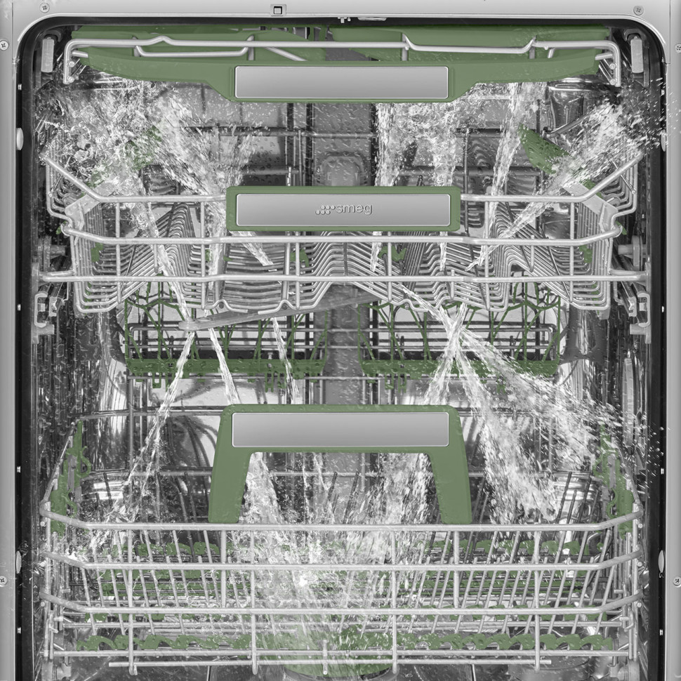 Описание Встраиваемая посудомоечная машина Smeg STL7322BQL Встраиваемая модель Smeg STL7322BQL отлично впишется в любой интерьер, главное — правильно выбрать место, чтобы подвести коммуникации. Устанавливается в нишу целиком, полностью закрывается декоративной панелью. Обратите внимание: в комплекте не идет фасад, его необходимо установить самостоятельно. Имеет стандартные размеры, поэтому может не поместиться на очень маленькой кухне. В камеру можно загрузить ограниченное число комплектов: 14 шт. Комплектом считается набор посуды на одного человека, который нужен для полноценного приема пищи: глубокая и плоская тарелки, тарелка для салата, блюдце под чашку, сама чашка, ложка и вилка. Используйте разные температурные режимы для мытья, в этой машинке их 7 шт. Есть автоматические программы с уже выбранными настройками под тип посуды или загрязнение. Специальный гигиенический режим гарантирует максимальную тщательность в удалении остатков пищи. Интенсивная мойка позволяет увеличить мощность, если в камере посуда для приготовления с подгоревшими или застарелыми загрязнениями. Быстрая программа экономит ваше время и справляется с легкими загрязнениями. Для деликатной посуды — стекла, хрусталя и т.д. — используйте специальные настройки, которые защищают хрупкую поверхность, но при этом удаляют грязь. Самая удобная функция для тех, кто редко собирает внушительное застолье и не любит копить посуду, — половинная загрузка камеры. Если вы переживаете, что стандартные программы не одолеют засохшие остатки или жирную посуду, то выберите замачивание. Модель поддерживает режим тихой работы, что удобно, если дома есть маленькие дети, либо вы пользуетесь такой техникой обычно поздним вечером. Режим сушки облегчает последующий уход за посудой, предотвращает подтеки на стенках тарелок и бокалов и удаляет значительный процент влаги. Производители внедрили цикл такого типа: конденсационная. Камера выполнена из нержавеющей стали, поэтому служит без проблем, какую бы высокую температуру вы ни включали. Внутри расположены разнообразные датчики, сигналы которых выводятся на панель управления, позволяют вам контролировать процесс. Машинка определяет остаток соли и предупреждает о том, что нужно добавить. Отдельный датчик проверяет наличие ополаскивателя. Эту модель можно подключить напрямую к горячей воде, чтобы сэкономить энергию на нагрев холодной. Она надежно защищена от протечек — если по какой-то причине не будет работать слив, клапан заблокирует шланг, чтобы больше внутрь вода не поступала. По окончании работы она подаст специальный сигнал.