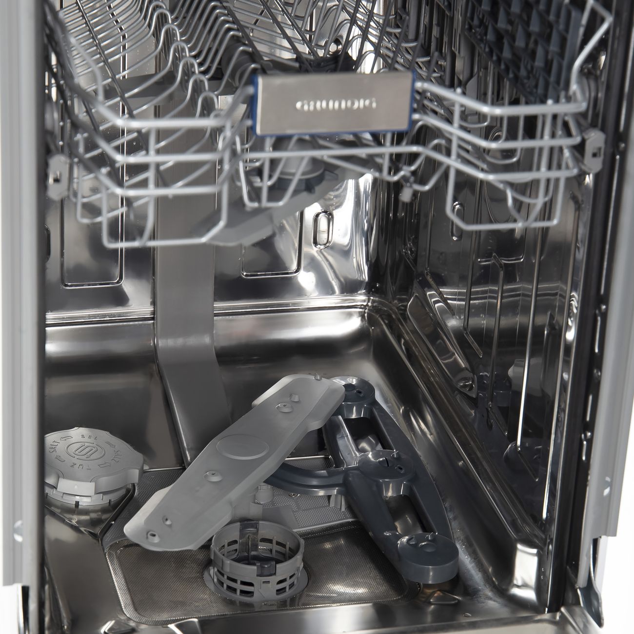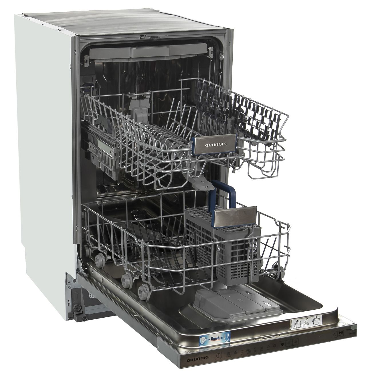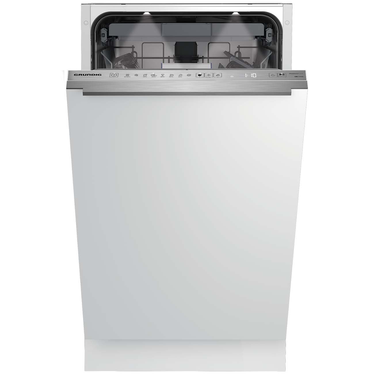 Описание Встраиваемая посудомоечная машина Grundig GSVP4151P Встраиваемая посудомоечная машина GSVP4151P – это сочетание компактности (её ширина 44,8 см) и вместительности. За раз можно загрузить до 11 комплектов. Прибор оснащён современным инверторным мотором, который отличает не только высокая надёжность, но и экономичное энергопотребление, соответствующее классу А. Практичный выбор В эту модель заложено восемь программ, позволяющих мыть практически всё: от повседневных тарелок и чашек до тонкого стекла, а также кастрюль, сковород и противней. Есть 30-минутный ускоренный цикл для слабозагрязнённой утвари и «Предварительное ополаскивание» для размягчения подсохших остатков пищи. Кроме традиционных коробов, устройство оборудовано лотком для столовых приборов. Хорошо прдумано Управление производится при помощи сенсорной панели. Проекция «Луч на полу» отобразит ход программы и подскажет, когда она завершится. Таймер отложенного старта даст возможность запускать мойку в удобное время, например, в период действия самых выгодных тарифов на электроэнергию. А встроенная подсветка упростит загрузку и выгрузку. Все продумано Безопасность обеспечивается надёжной системой WaterSafe+, которая предотвратит протечку в случае возникновения каких-то неполадок.