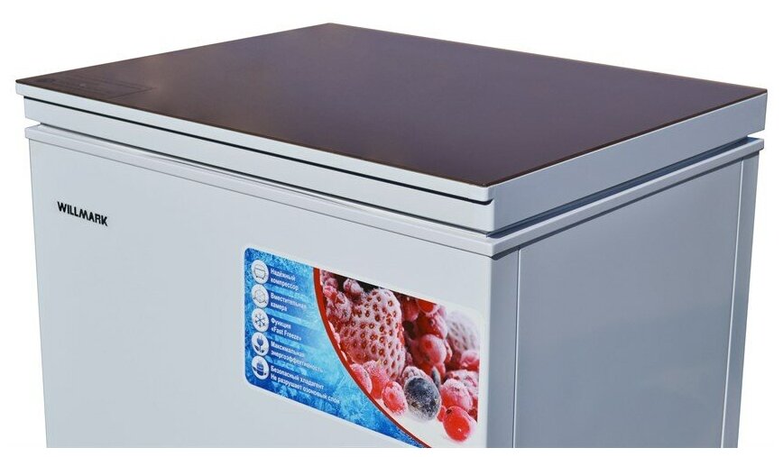 Описание Морозильный ларь Willmark CF-310G Морозильный ларь Willmark CF-310G - это надежный морозильный ларь со стеклянной крышкой, с общим объёмом 305 литров, обеспечивающий безопасное и длительное хранение продуктов питания. Низкий уровень шума, экономный режим потребления электроэнергии – достоинства данной модели! Морозильный ларь Willmark CF-310G в белом исполнении, выполнен в привлекательном дизайне, имеет компактные размеры, что позволит ему отлично вписаться в любой интерьер. Модель снабжена двумя роликами для удобства перемещения. Панель управления состоит из механического регулятора мощности охлаждения размеченного на установку минимальной и максимальной температуры внутри камеры. В комплектацию модели входит две подвесные корзины.
