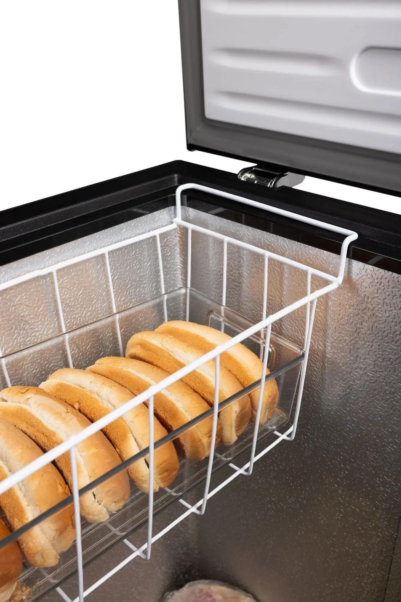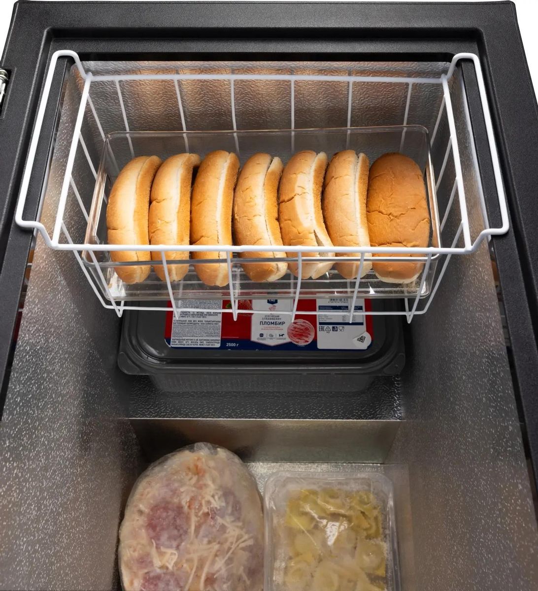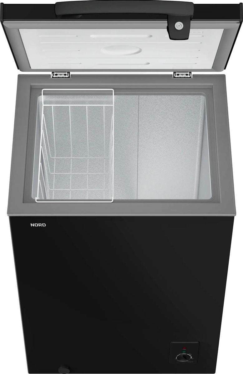 Описание Морозильный ларь NORD CN 150 B Морозильный ларь NORD CN 150 B в элегантном черном цвете — надёжное и практичное решение для хранения продуктов дома или на даче. Модель объёмом 135 литров позволяет удобно замораживать мясо, рыбу, овощи и готовые блюда, обеспечивая оптимальные условия для долгого хранения. Этот ларь — универсальное решение 3 в 1: он может работать как морозильная камера, как холодильник, а также в режиме «Суперзаморозка» (обеспечивает температуру до –24 °C и ниже для сохранения максимума полезных веществ, витаминов, натурального вкуса и структуры продуктов). Широкий диапазон температур работы устройства позволяет поддерживать от –12 до –24 °C для заморозки или до +5 °C для охлаждения свежих продуктов. Морозильник оснащён ручкой с замком для безопасного использования и вместительной корзиной для удобной организации продуктов. Модель отличается высокой энергоэффективностью (класс A+) и низким уровнем шума до 41 дБ, а фреон R600a обеспечивает эффективное охлаждение при минимальном энергопотреблении (166 кВт·ч/год). Подходит для климатических классов N/SN/ST, мощность замораживания — до 4,5 кг продуктов в сутки. У ларя есть «зимняя защита», которая поддерживает стабильную работу устройства при температуре окружающей среды до –15 °C, позволяя устанавливать модель даже в неотапливаемых помещениях.