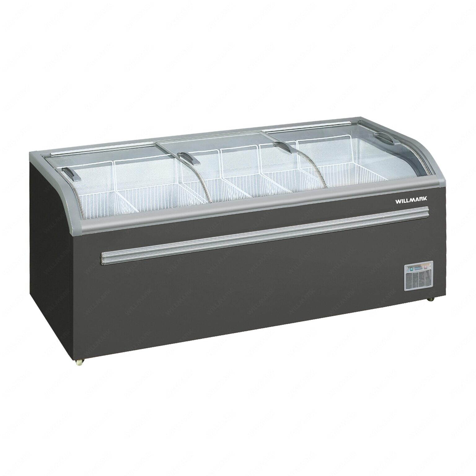 Описание Морозильный ларь Willmark WCF-765BSG Морозильный ларь-бонета Willmark WCF-765BSG в графитовом цвете предназначен для хранения и демонстрации различных типов продукции. Конструкция с панорамными стеклянными раздвижными крышками из закаленного стекла, замками и внутренним освещением хорошо подходит для оснащения продуктовых магазинов и супермаркетов. Корпус выполнен из оцинкованного пластифицированного металла. Willmark WCF-765BSG оснащен электронным контроллером с цифровым дисплеем и позволяет работать как в режиме охлаждения от 0 до +10С, так и в режиме заморозки достигая -26С. Изделие с габаритами Ш*Г*В 2000*757*860мм. и внушительным общим объёмом в 718 л. легко передвигать с помощью установленных колёс. 6 корзин в комплекте позволят максимально эффективно использовать всё внутреннее пространство WCF-765BSG.