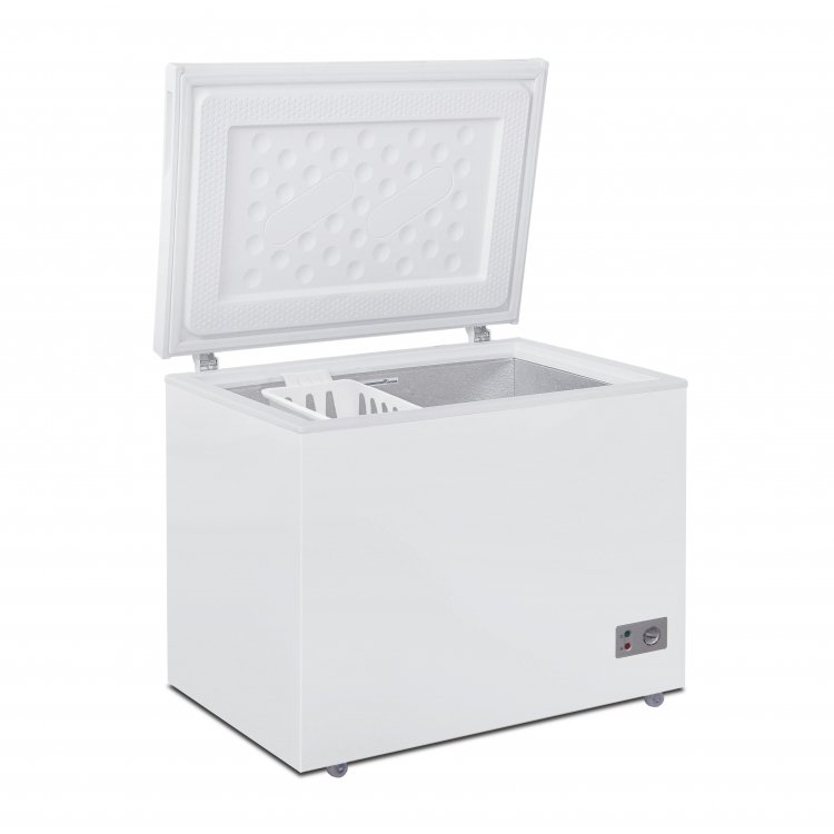 Описание Морозильный ларь Бирюса 260KVS Морозильный ларь Бирюса 260KVS – это устройство, которое просто создано для того, чтобы продукты оставались свежими и полезными. Модель имеет одну дверцу, которая открывается вверх, а также 4 колесика, обеспечивающих мобильность и легкость перемещения. Морозильный ларь Бирюса 260KVS имеет режим замораживания, позволяющий максимально быстро заморозить продукты для лучшего сохранения в них питательных веществ. Дополнительно на блоке установлена индикация: подключение ларя к электросети, сигнализация повышения температуры свыше -10 ºС.